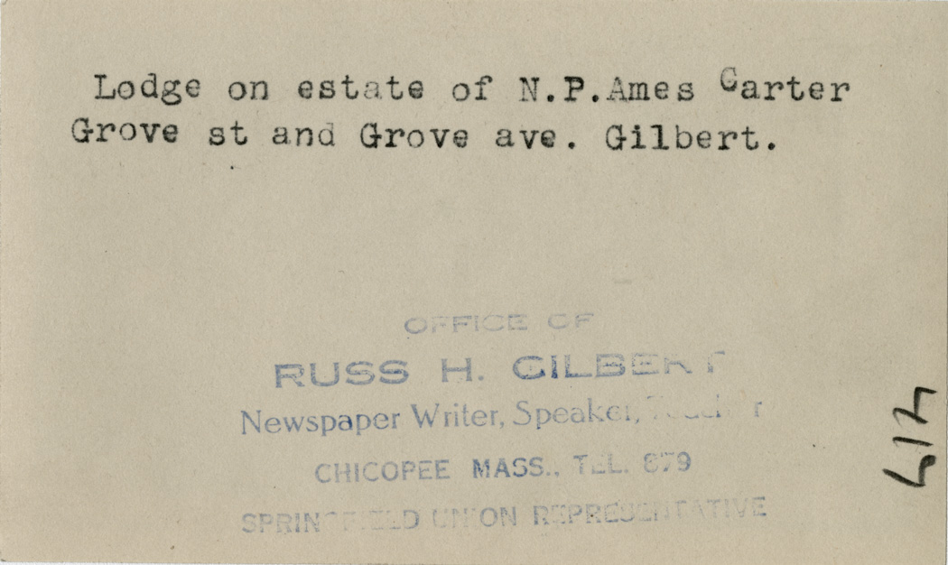 Lodge on estate of N.P. Ames Carter on the corner of Grove Street and Grove Avenue.