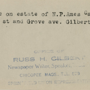 Gilbert, Russ H., “Estate of N.P. Ames,” Chicopee Archives Online, accessed March 6, 2026, https://www.chicopeepubliclibrary.org/archives/items/show/4588.