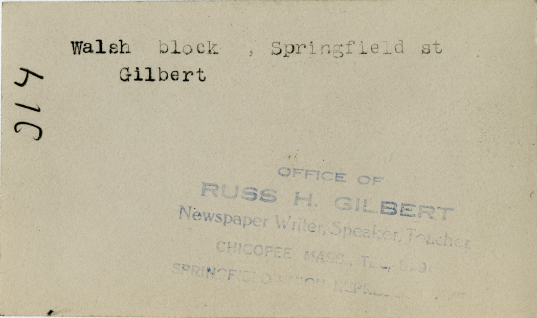 Gilbert, Russ H., “Walsh Block, Sprngfield Street,” Chicopee Archives Online, accessed March 6, 2026, https://www.chicopeepubliclibrary.org/archives/items/show/4589.