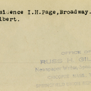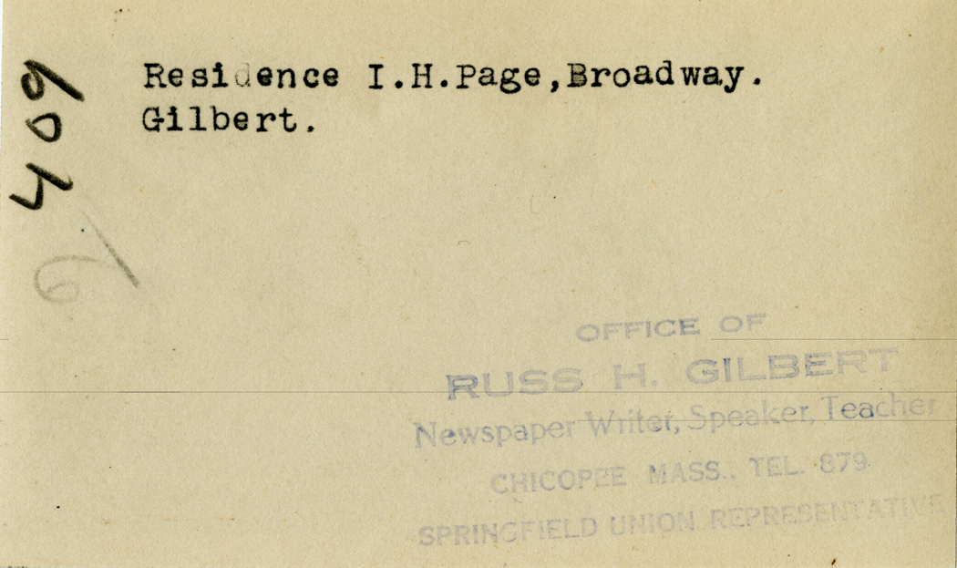 Gilbert, Russ H., “I.H. Page Residence,” Chicopee Archives Online, accessed March 6, 2026, https://www.chicopeepubliclibrary.org/archives/items/show/4605.
