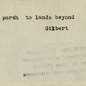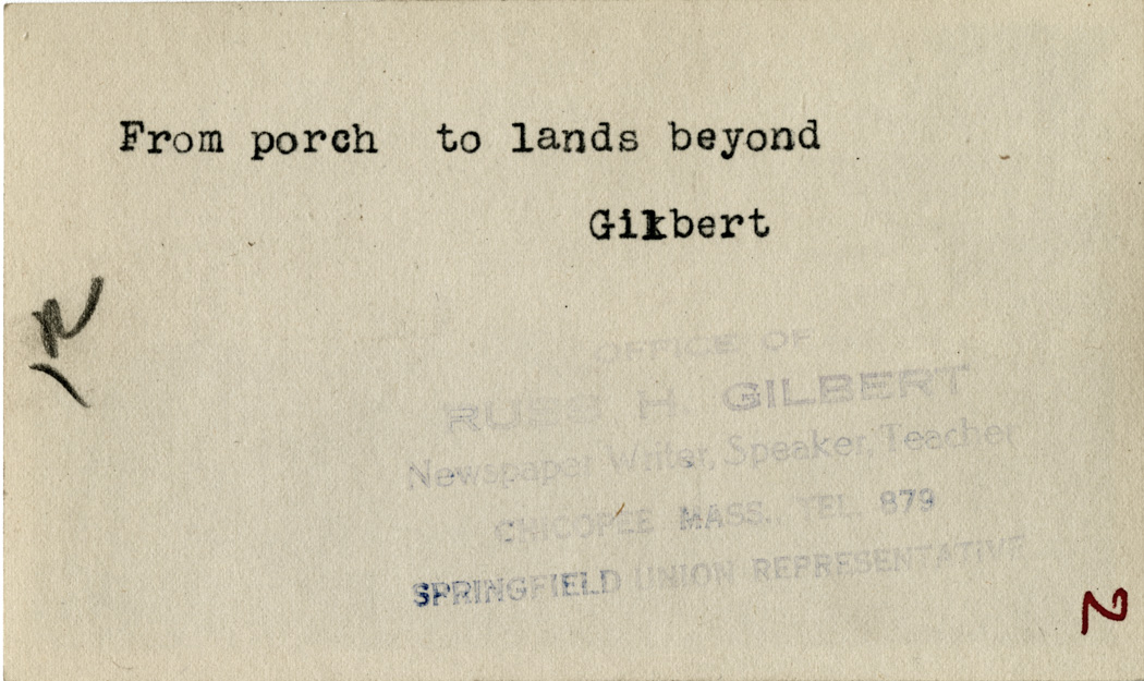 Gilbert, Russ H., “The Lands Beyond,” Chicopee Archives Online, accessed March 6, 2026, https://www.chicopeepubliclibrary.org/archives/items/show/4616.