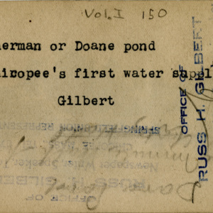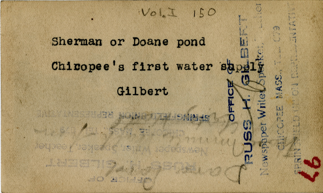 Gilbert, Russ H., “Chicopee's First Water Supply,” Chicopee Archives Online, accessed March 5, 2026, https://www.chicopeepubliclibrary.org/archives/items/show/4638.