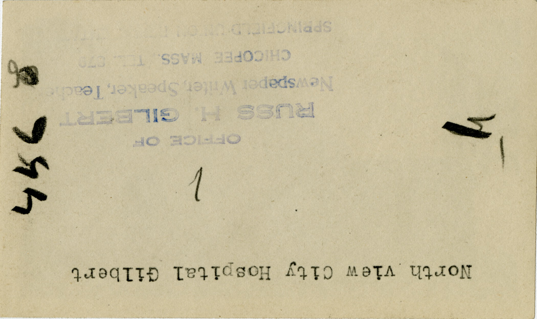 Gilbert, Russ H., “North View of City Hospital,” Chicopee Archives Online, accessed March 6, 2026, https://www.chicopeepubliclibrary.org/archives/items/show/4654.