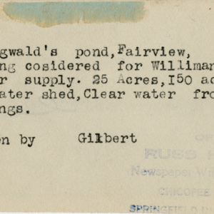 Langwald's Pond, Fairview being considered for the Willimansett water supply