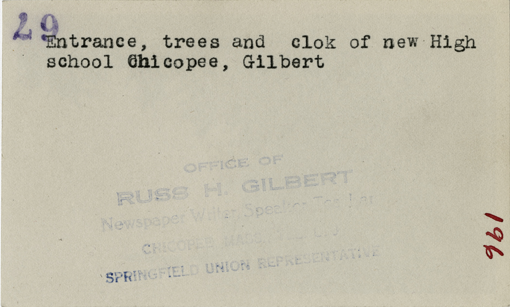 Gilbert, Russ H., “Chicopee High School Clock,” Chicopee Archives Online, accessed March 6, 2026, https://www.chicopeepubliclibrary.org/archives/items/show/4681.