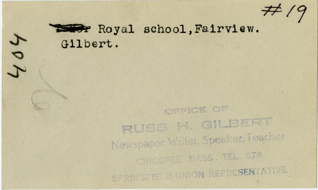 Gilbert, Russ H., “Royal School,” Chicopee Archives Online, accessed March 6, 2026, https://www.chicopeepubliclibrary.org/archives/items/show/4697.
