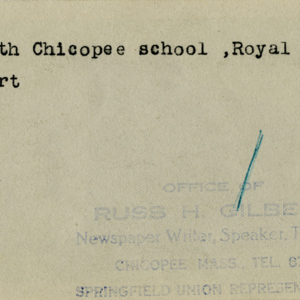 Gilbert, Russ H., “North Chicopee School,” Chicopee Archives Online, accessed March 6, 2026, https://www.chicopeepubliclibrary.org/archives/items/show/4698.