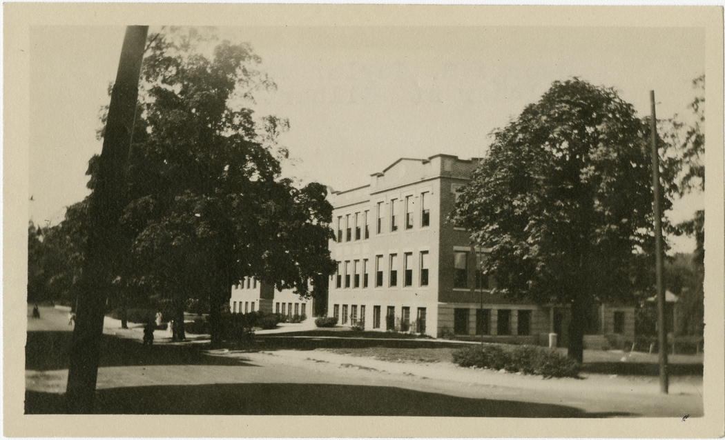 George S. Taylor School on Belcher Street viewed through trees