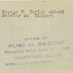 Gilbert, Russ H., “George S. Taylor School,” Chicopee Archives Online, accessed March 6, 2026, https://www.chicopeepubliclibrary.org/archives/items/show/4709.