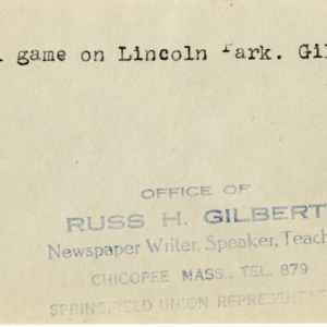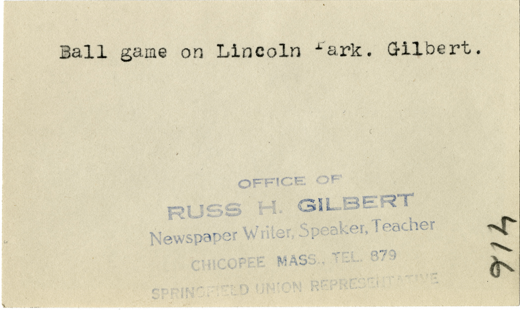 Gilbert, Russ H., “Baseball Game at Lincoln Park,” Chicopee Archives Online, accessed March 6, 2026, https://www.chicopeepubliclibrary.org/archives/items/show/4716.