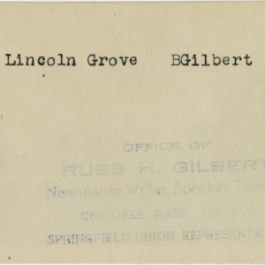 Gilbert, Russ H., “Lincoln Grove,” Chicopee Archives Online, accessed March 6, 2026, https://www.chicopeepubliclibrary.org/archives/items/show/4717.