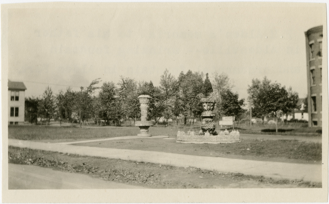 P.M. Alden's memorial to his father in Aldenville - a drinking fountain on the right and an ornimental fountain on the left