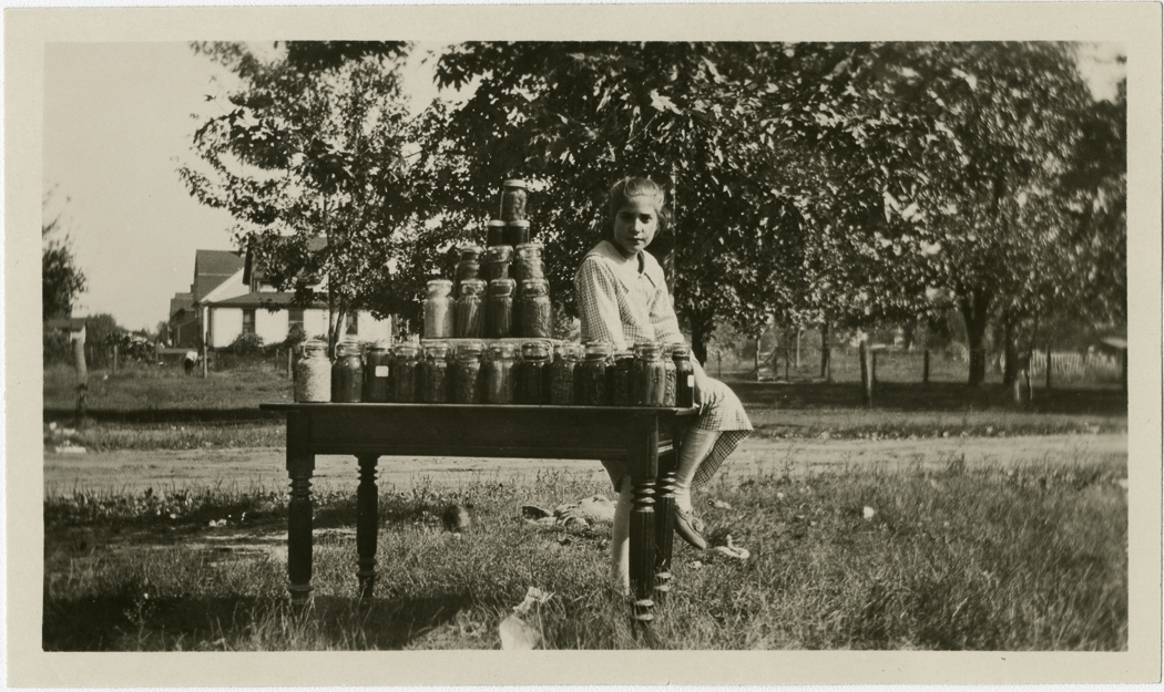 Aldenville Canning Club member and her canned goods