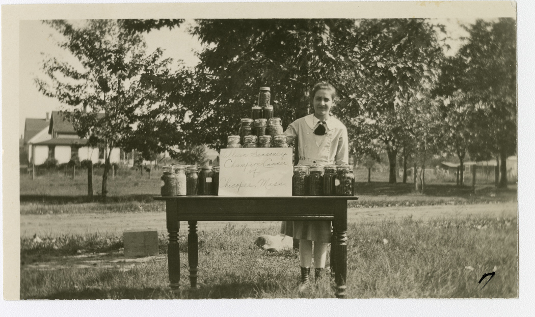 Aldenville Canning Club members showing her canned goods