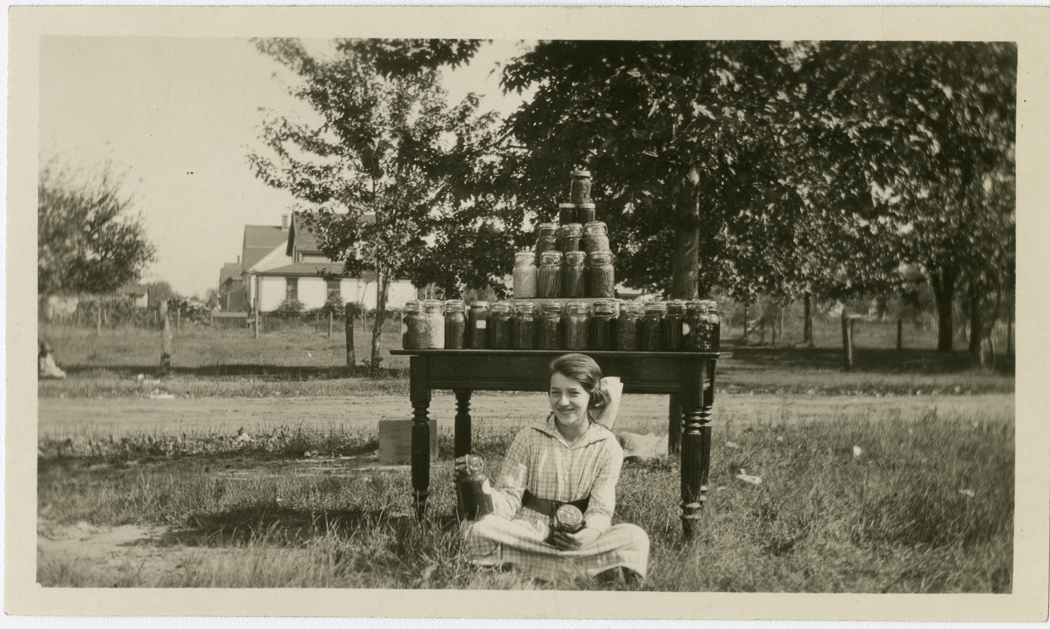 Aldenville Canning Club members showing her canned goods