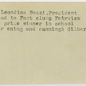 Leondina Bozzi, President of the Head to Foot Club in Fairveiw, and prize winner in school gardening and canning