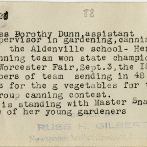 Gilbert, Russ H., “Dorothy Dunn and Master Snape,” Chicopee Archives Online, accessed March 6, 2026, https://www.chicopeepubliclibrary.org/archives/items/show/4766.