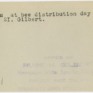 Gilbert, Russ H., “Scene at Bee Distribution Day,” Chicopee Archives Online, accessed March 6, 2026, https://www.chicopeepubliclibrary.org/archives/items/show/4782.