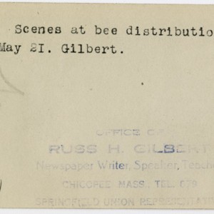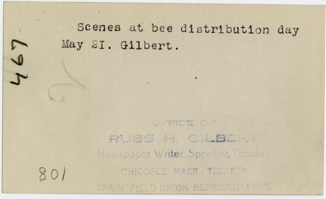 Gilbert, Russ H., “Scene at Bee Distribution Day,” Chicopee Archives Online, accessed March 6, 2026, https://www.chicopeepubliclibrary.org/archives/items/show/4786.