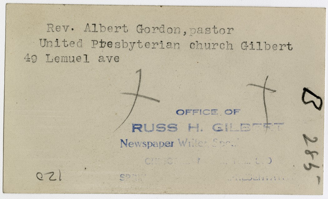 Rev. Albert Gordon, pastor of the United Presbyterian Church at 49 Lemuel Ave.