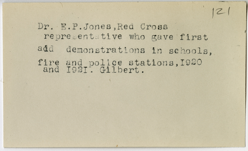 Dr. E.P. Jones, Red Cross representative who gave first aid demonstrations in schools, fire and police stations