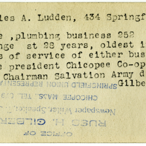 Gilbert, Russ H., “Charles A. Ludden,” Chicopee Archives Online, accessed March 6, 2026, https://www.chicopeepubliclibrary.org/archives/items/show/4807.