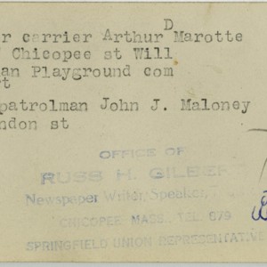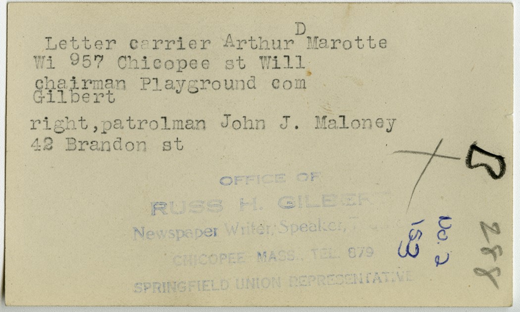 Gilbert, Russ H., “Arthur Marotte and John Maloney,” Chicopee Archives Online, accessed March 6, 2026, https://www.chicopeepubliclibrary.org/archives/items/show/4831.