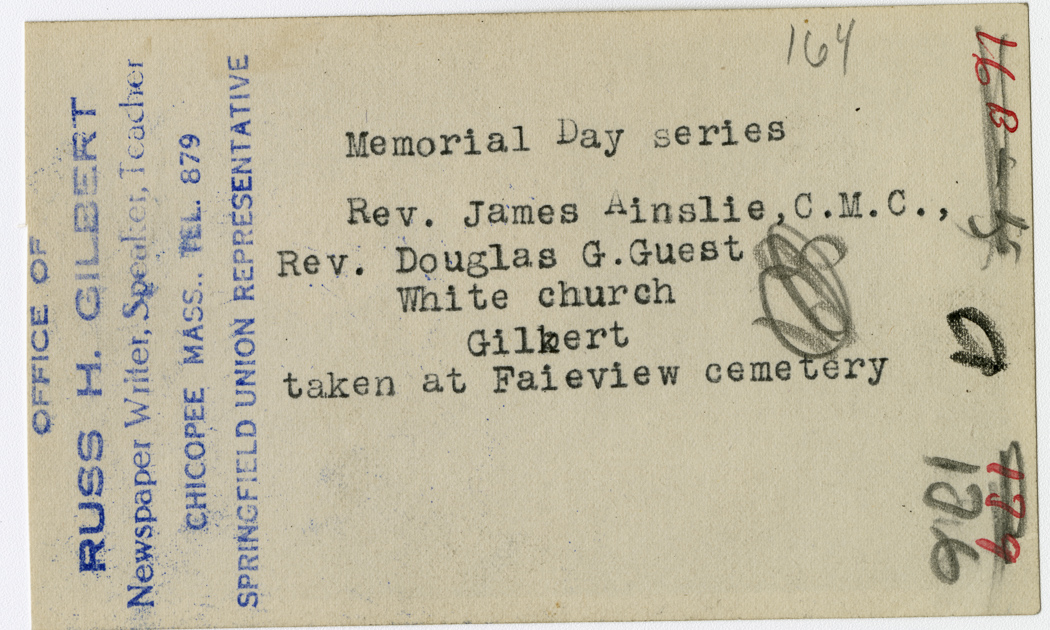 Gilbert, Russ H., “Memorial Day at Fairview Cemetery,” Chicopee Archives Online, accessed March 6, 2026, https://www.chicopeepubliclibrary.org/archives/items/show/4842.