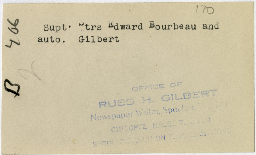 Gilbert, Russ H., “Edward Bourbeau and Auto,” Chicopee Archives Online, accessed March 6, 2026, https://www.chicopeepubliclibrary.org/archives/items/show/4848.