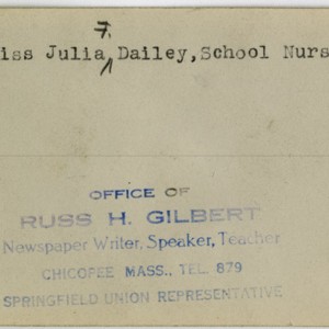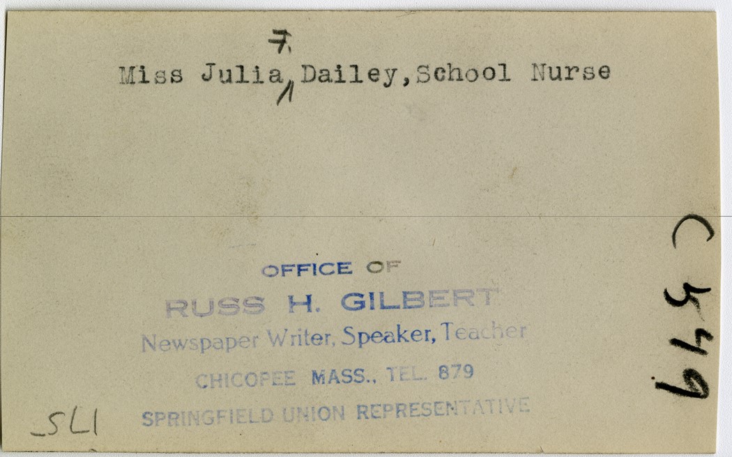 Gilbert, Russ H., “Miss Julia Dailey,” Chicopee Archives Online, accessed March 6, 2026, https://www.chicopeepubliclibrary.org/archives/items/show/4853.