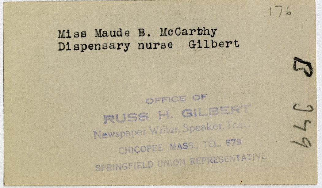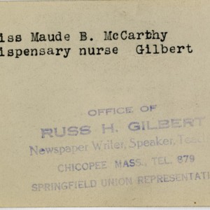 Gilbert, Russ H., “Miss Maude B. McCarthy,” Chicopee Archives Online, accessed March 6, 2026, https://www.chicopeepubliclibrary.org/archives/items/show/4854.