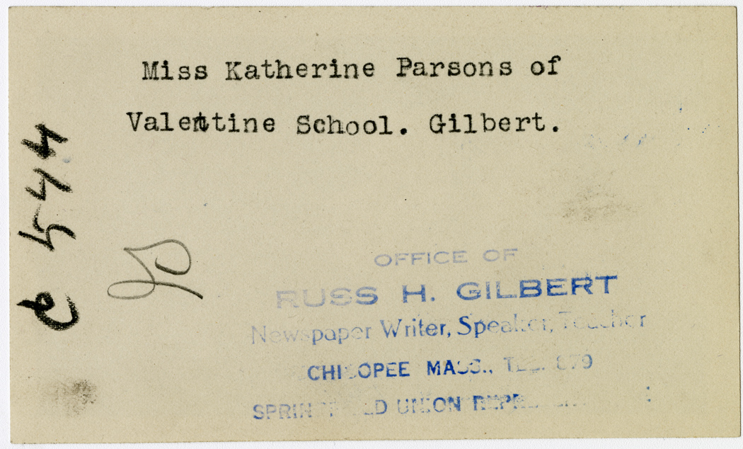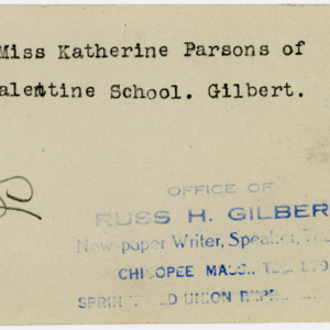 Gilbert, Russ H., “Miss Katherine Parsons,” Chicopee Archives Online, accessed March 6, 2026, https://www.chicopeepubliclibrary.org/archives/items/show/4858.