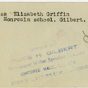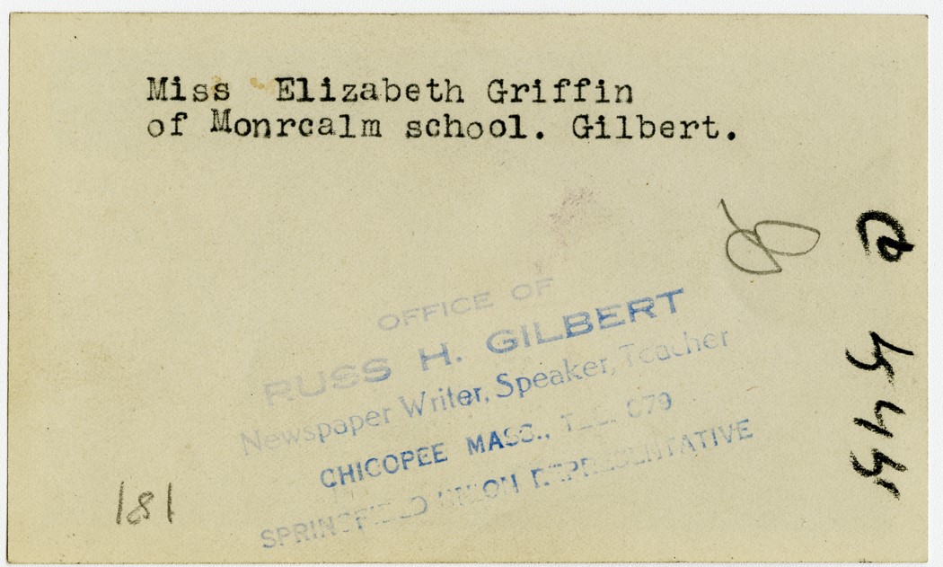 Gilbert, Russ H., “Miss Elizabeth Griffin,” Chicopee Archives Online, accessed March 6, 2026, https://www.chicopeepubliclibrary.org/archives/items/show/4859.