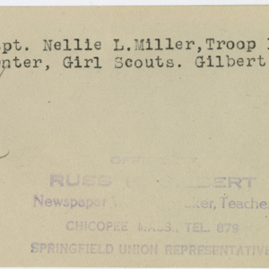 Gilbert, Russ H., “Captain Nellie Miller,” Chicopee Archives Online, accessed March 6, 2026, https://www.chicopeepubliclibrary.org/archives/items/show/4908.