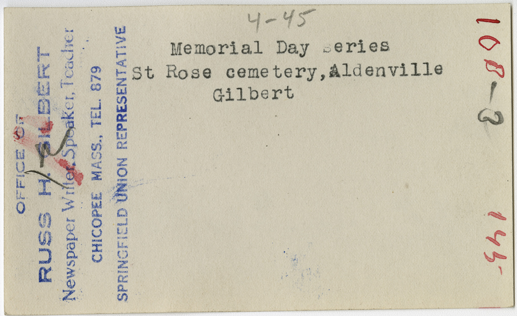 Gilbert, Russ H., “Memorial Day at St. Rose Cemetery,” Chicopee Archives Online, accessed March 6, 2026, https://www.chicopeepubliclibrary.org/archives/items/show/4941.