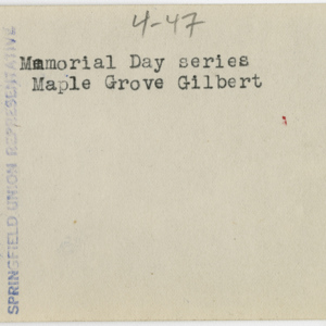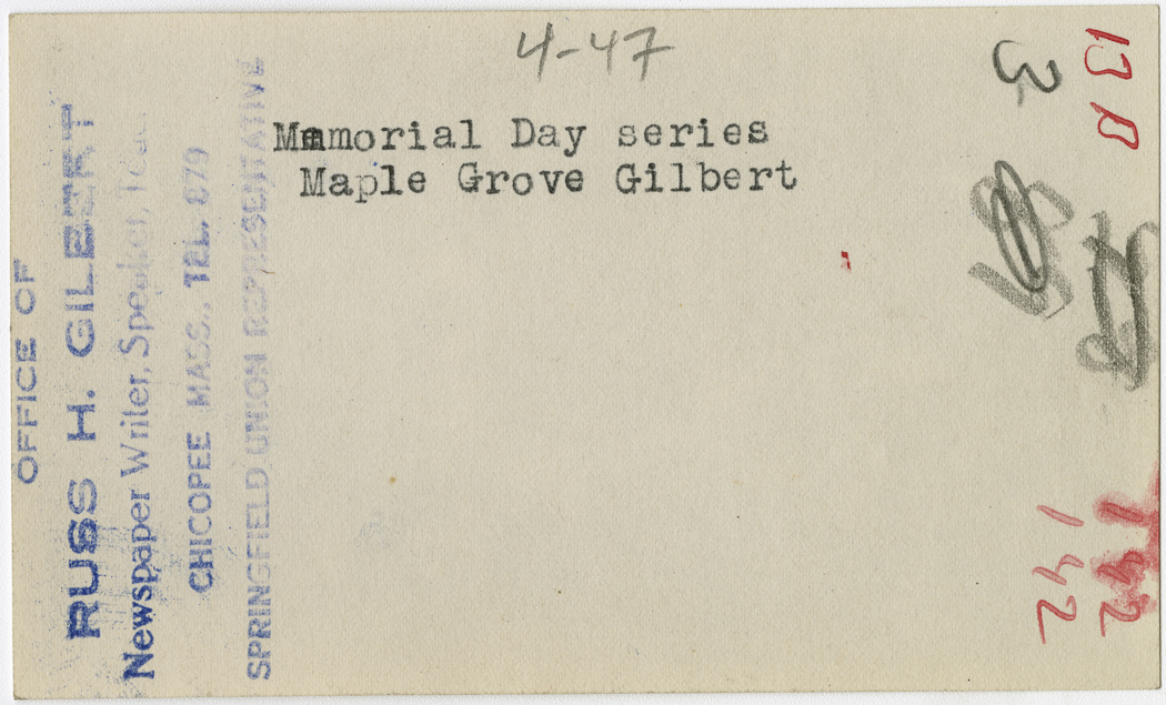 Gilbert, Russ H., “Maple Grove on Memorial Day,” Chicopee Archives Online, accessed March 6, 2026, https://www.chicopeepubliclibrary.org/archives/items/show/4943.