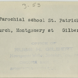 Gilbert, Russ H., “School at St. Patrick's,” Chicopee Archives Online, accessed March 6, 2026, https://www.chicopeepubliclibrary.org/archives/items/show/4949.