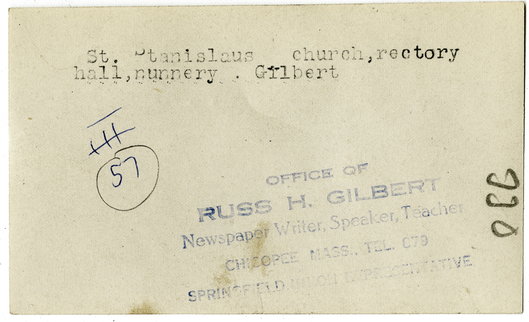 Gilbert, Russ H., “St. Stanislaus Church and Rectory,” Chicopee Archives Online, accessed March 6, 2026, https://www.chicopeepubliclibrary.org/archives/items/show/4953.