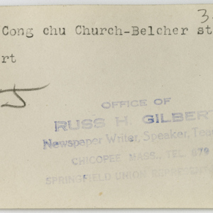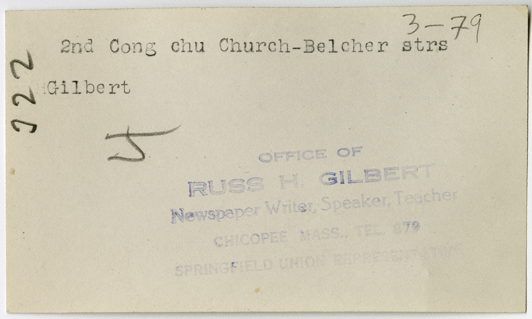 Gilbert, Russ H., “Second Congregational Church,” Chicopee Archives Online, accessed March 6, 2026, https://www.chicopeepubliclibrary.org/archives/items/show/4975.