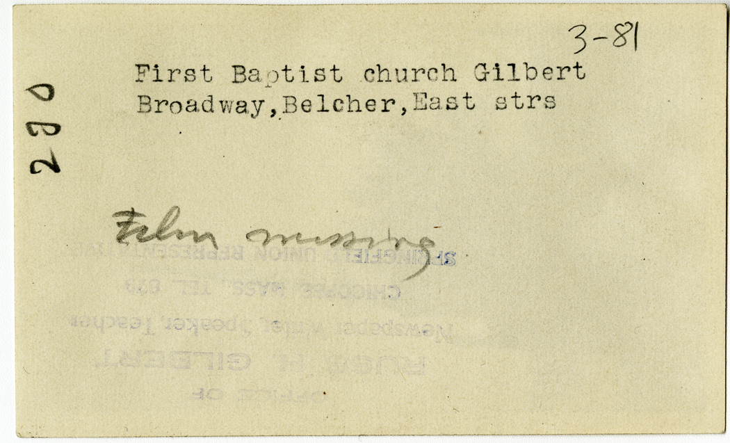 Gilbert, Russ H., “First Baptist Church,” Chicopee Archives Online, accessed March 6, 2026, https://www.chicopeepubliclibrary.org/archives/items/show/4977.