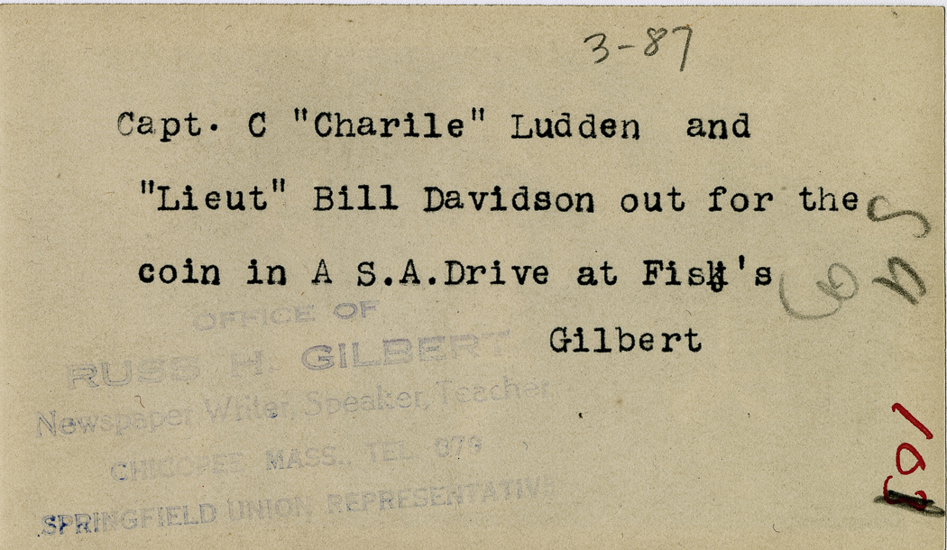Russ H. Gilbert photographic collection, 1917-1922. Chicopee History Room, Chicopee Public Library, Chicopee, Mass. http://www.chicopeepubliclibrary.org/