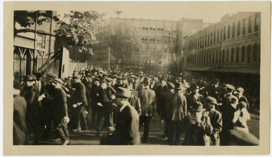 View of the crowd gathered for the Salvation Army Coin Drive in front of the Fisk Tire Plant