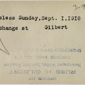 Russ H. Gilbert photographic collection, 1917-1922. Chicopee History Room, Chicopee Public Library, Chicopee, Mass. http://www.chicopeepubliclibrary.org/