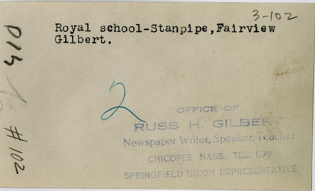Gilbert, Russ H., “Royal School and Standpipe,” Chicopee Archives Online, accessed March 6, 2026, https://www.chicopeepubliclibrary.org/archives/items/show/4998.
