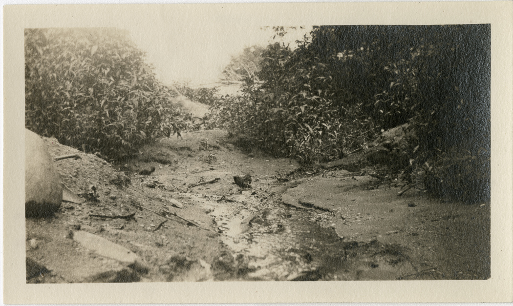 View of a small brook that Gilbert describes as the abandoned condition of the area near Schoolhouse Road that is used as a cow path