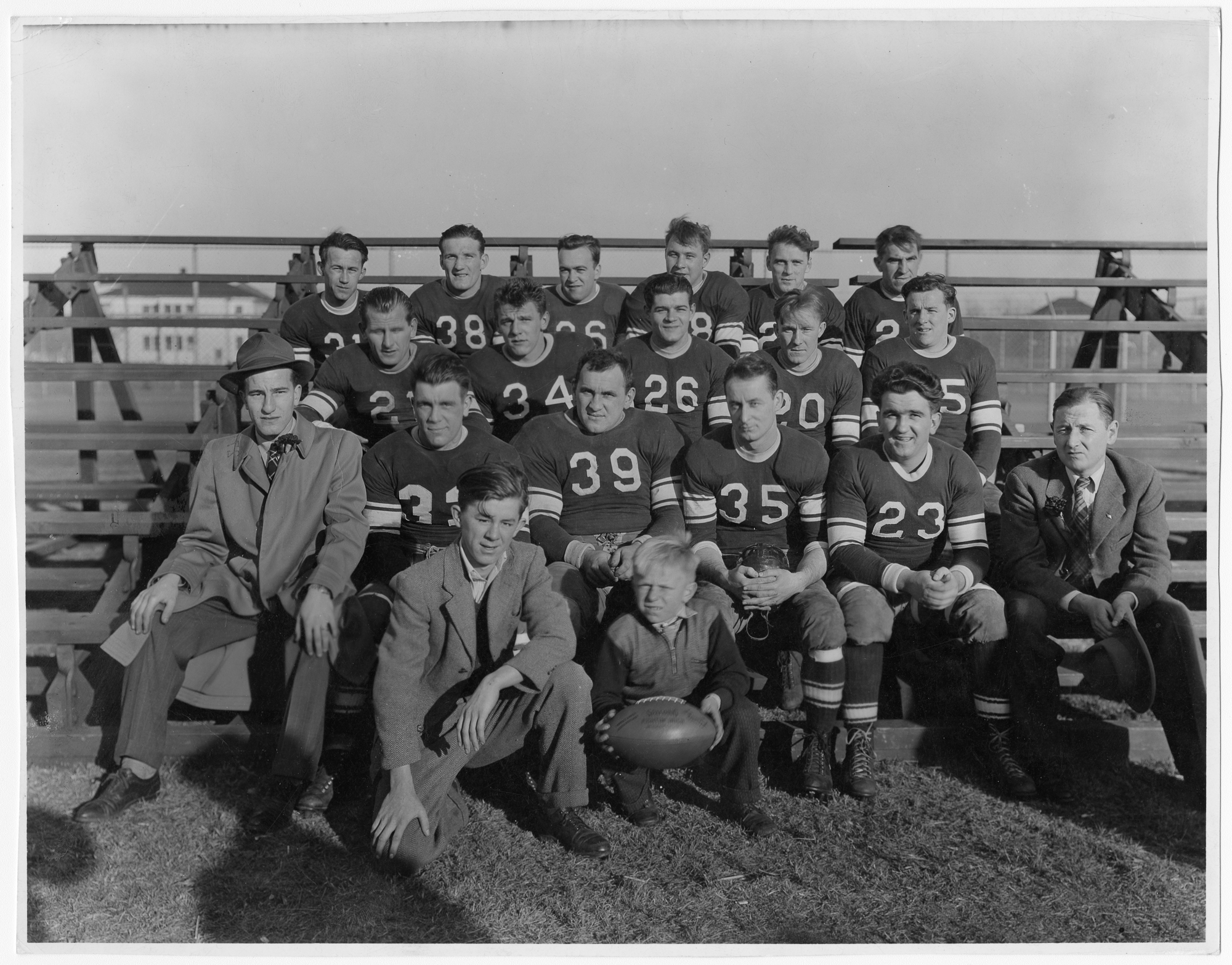 Team photo, 15 players with coaches, "Mascot"/ball boy and game ball