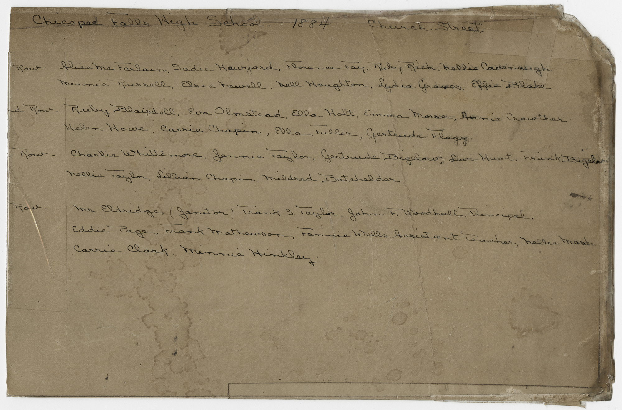 “Class of 1884 - Chicopee Falls High School, Church Street, Chicopee Falls, MA,” Chicopee Archives Online, accessed March 5, 2026, https://www.chicopeepubliclibrary.org/archives/items/show/5130.