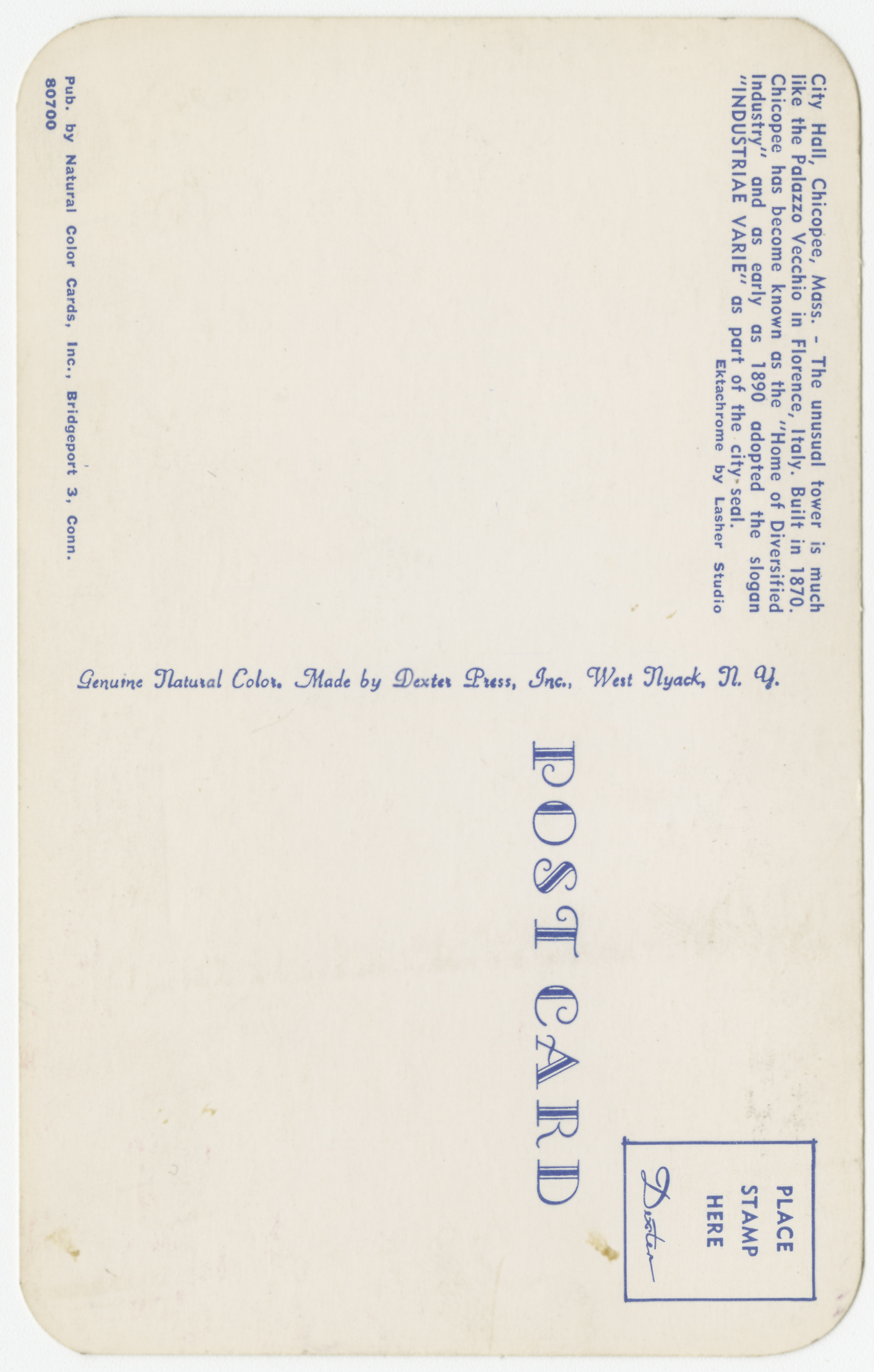 Natural Color Cards, Inc., Bridgeport 3, Conn., “Anthony J. Stonina - postcard of City Hall,” Chicopee Archives Online, accessed March 6, 2026, https://www.chicopeepubliclibrary.org/archives/items/show/5410.