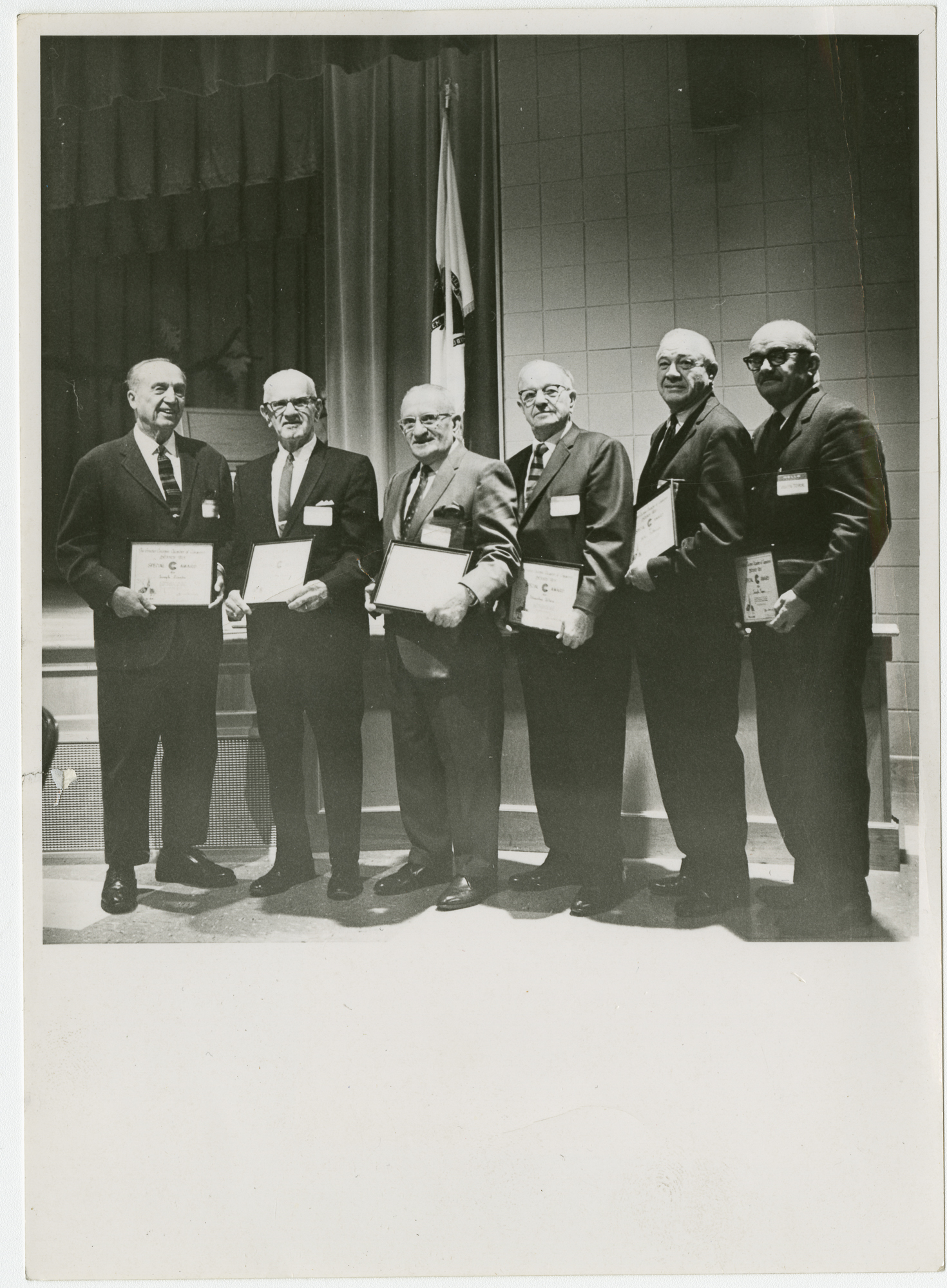 Anthony J. Stonina receives an award of appreciation with 5 other unidentified men