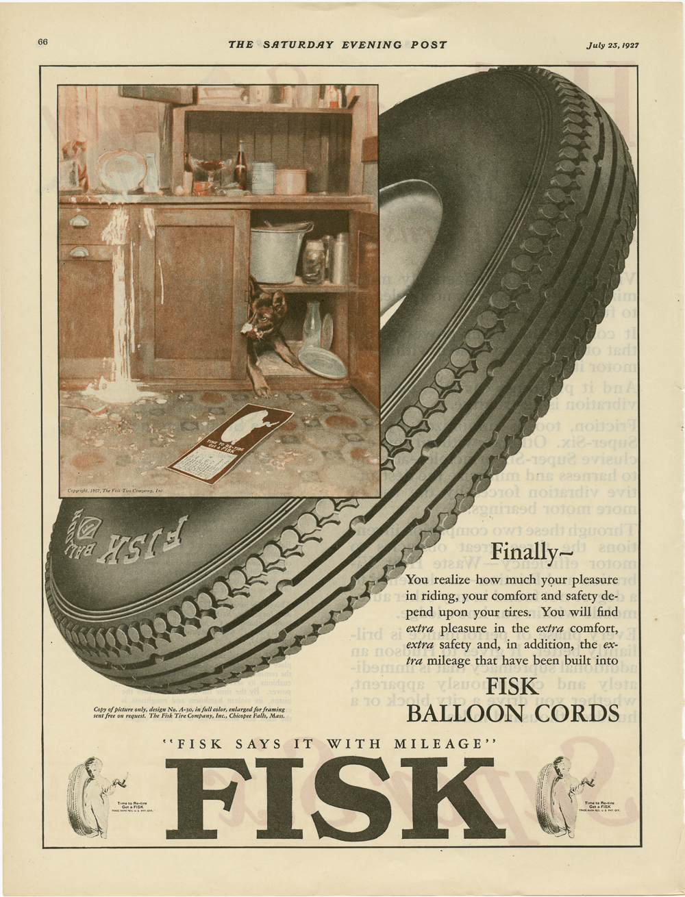 uncredited, “Fisk Tire Company Print Ad - Dog Trouble,” Chicopee Archives Online, accessed March 5, 2026, https://www.chicopeepubliclibrary.org/archives/items/show/5503.